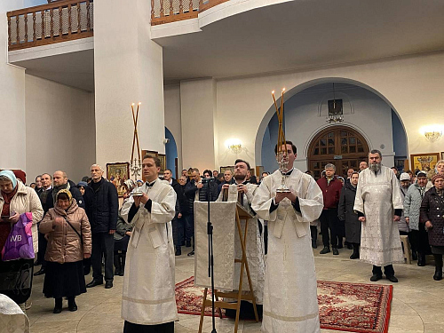 На сугубой ектении были вознесены особые прошения, Преосвященнейший Владыка прочитал молитву о Святой Руси.