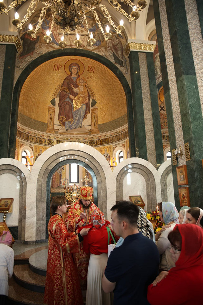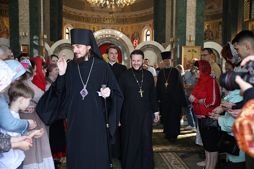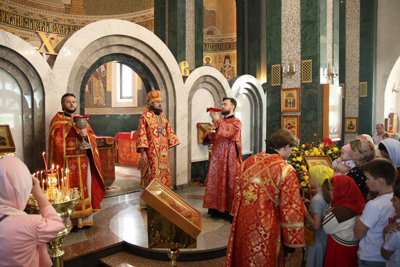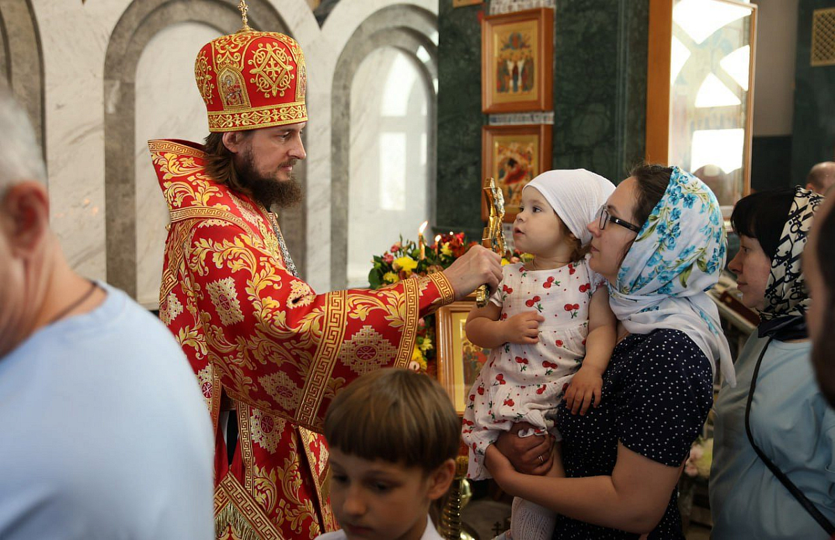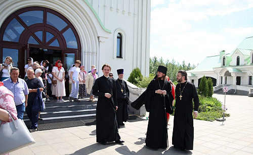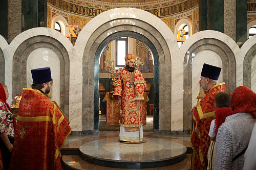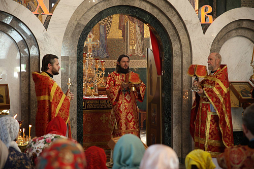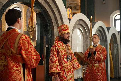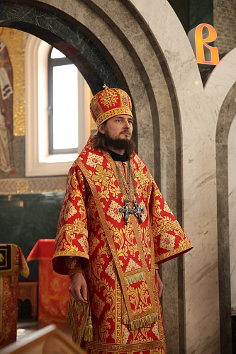 Его Преосвященству сослужили: благочинный Параскево-Пятницкого церковного округа, настоятель храма Святой великомученицы Параскевы Пятницы в Качалове протоиерей Анатолий Кожа, исполняющий обязанности настоятеля храма Святителя Стефана Пермского в Южном Бутово города Москвы иерей Димитрий Самсонов, клирик храма преподобной Евфросинии Московской в Котловке диакон Константин Бабак. За богослужением Преосвященнейший Владыка прочитал молитву о Святой Руси.
