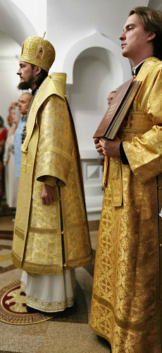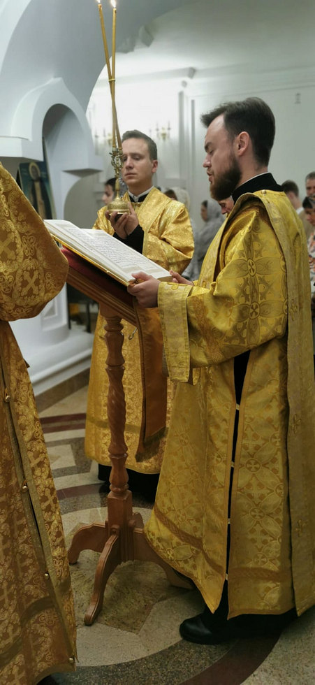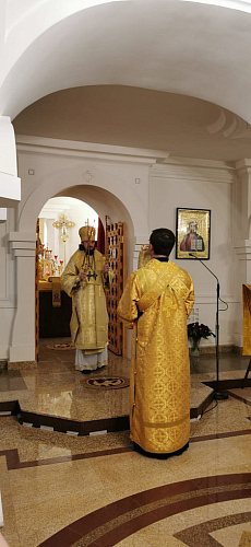 Его Преосвященству сослужили: Благочинный Параскево-Пятницкого церковного округа, настоятель храма Великомученицы Параскевы Пятницы в Качалове города Москвы, протоиерей Анатолий Кожа, настоятель храмового комплекса в честь Владимирской иконы Божией Матери в Южном Бутове протоиерей Сергий Тришкин, клирик храма Владимирской иконы Божией Матери в Южном Бутове иерей Илия Ермаков и клирик храма преподобной Евфросинии Московской в Котловке диакон Константин Бабак.