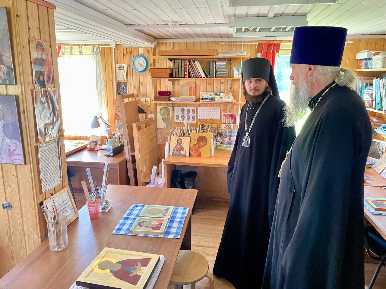 Далее состоялось знакомство Владыки Алексия с территорией храмового комплекса. Он осмотрел алтарь храма великомученика и целителя Пантелеимона, где ведутся благоукрасительные работы, посетил находящиеся на территории храмового комплекса здания службы милосердия, иконописной мастерской "Елеуса" и воскресной школы "Светлая тропинка", ознакомился с историей и жизнью прихода.
