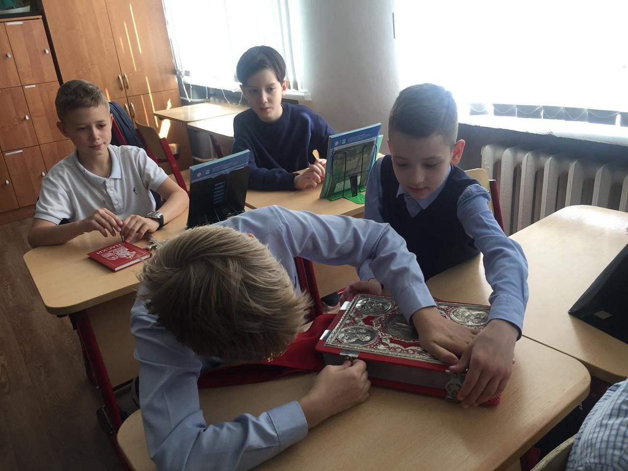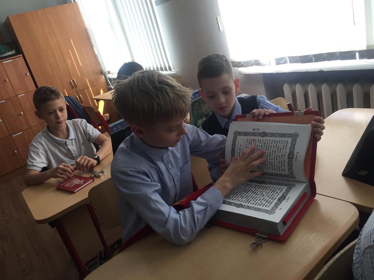 Так же во время урока священник Димитрий показал ребятам богослужебную утварь, используемую на пасхальной службе и рассказал о ее значении.