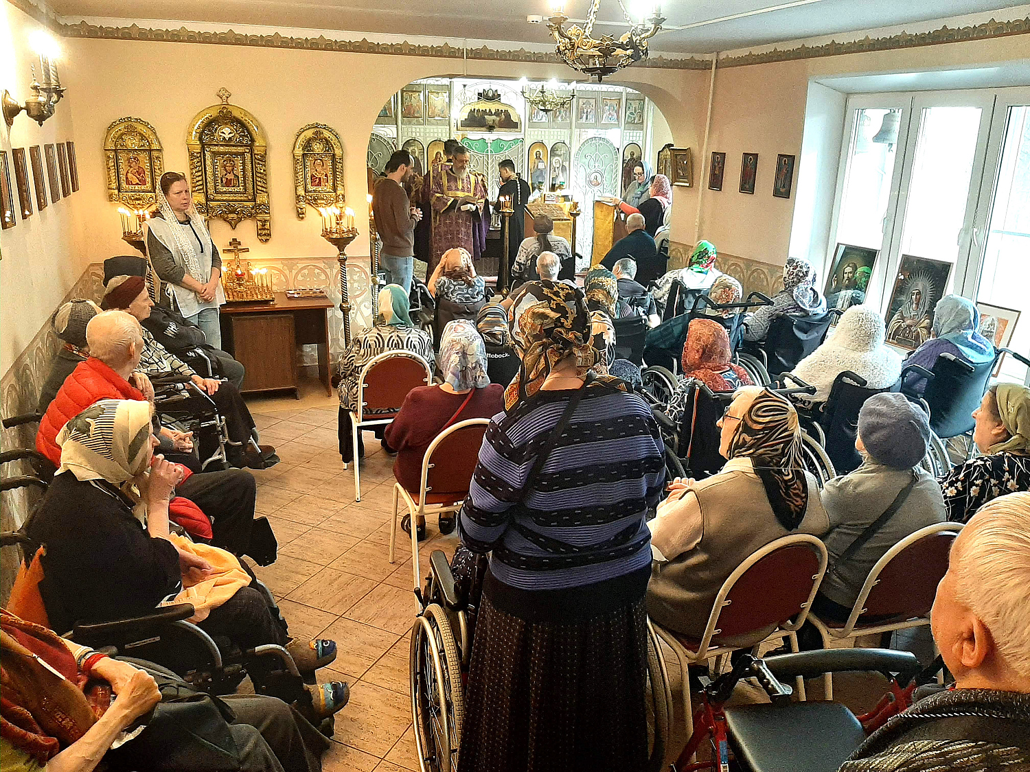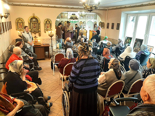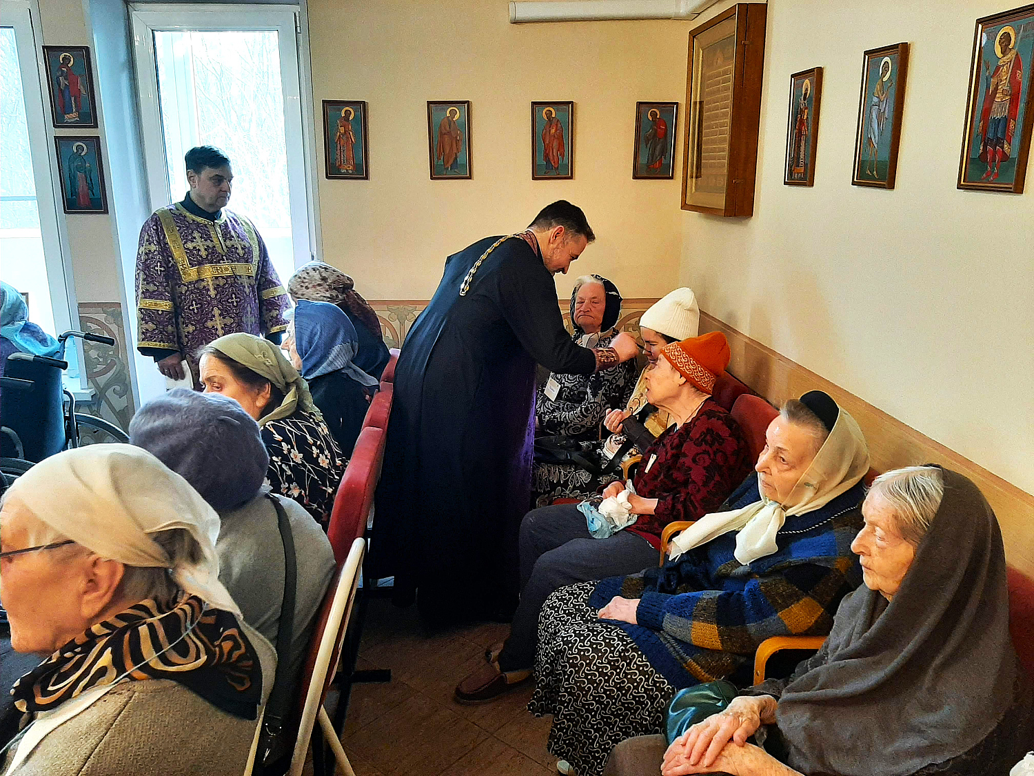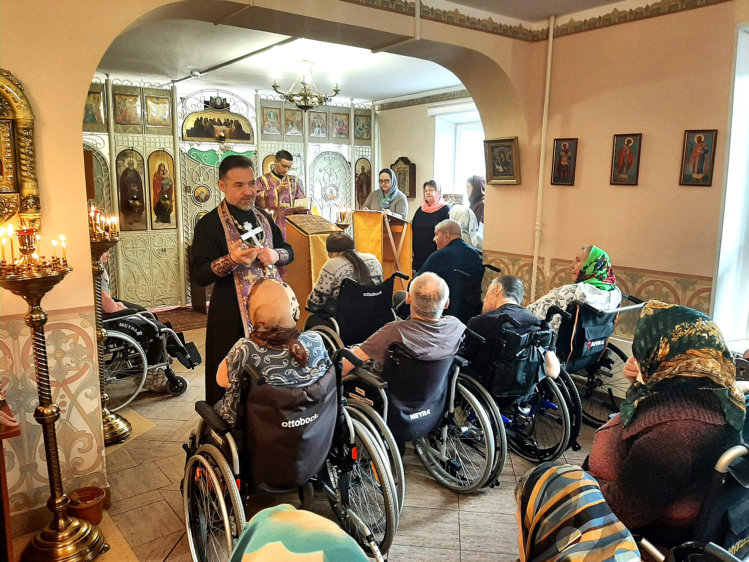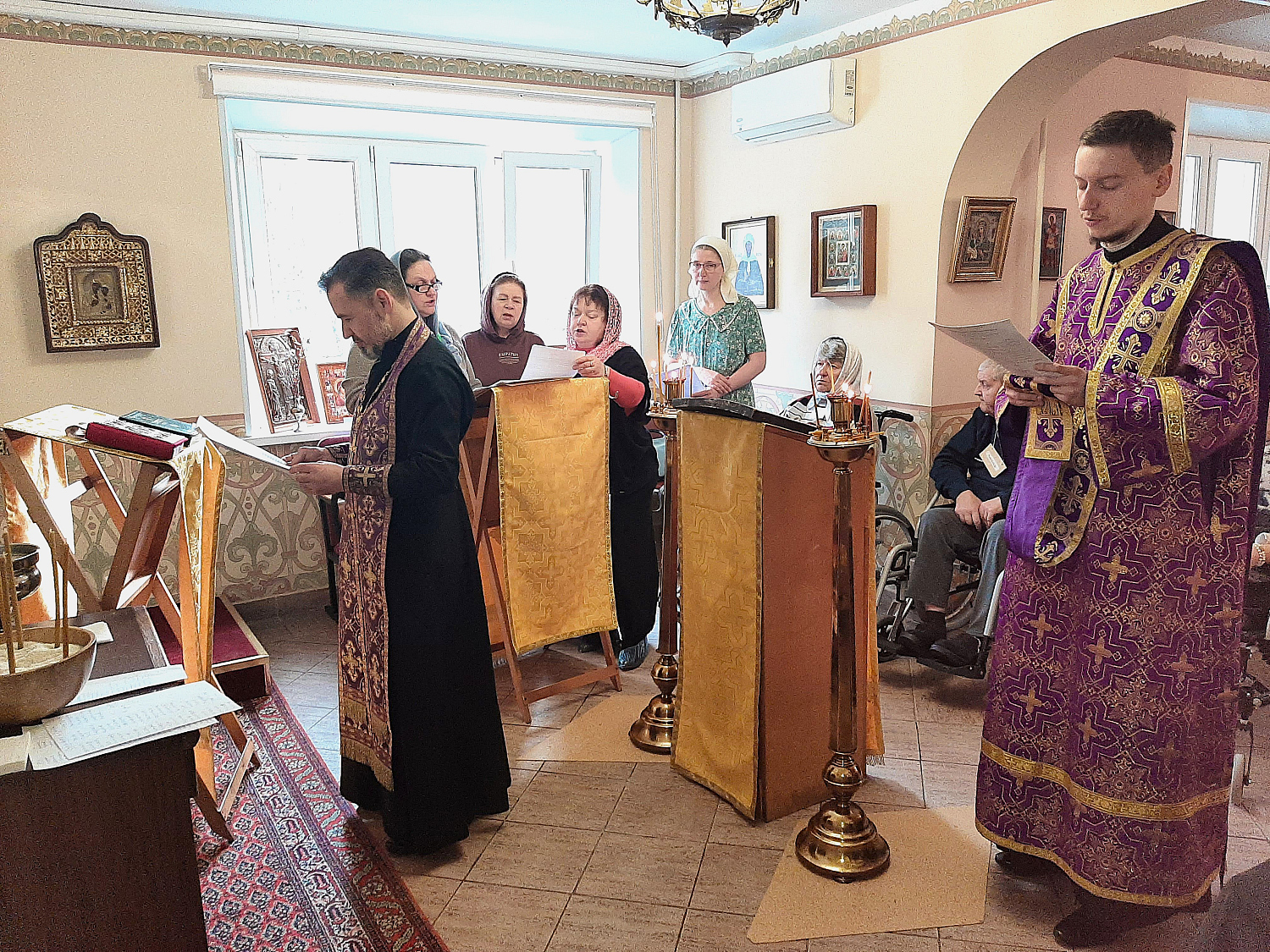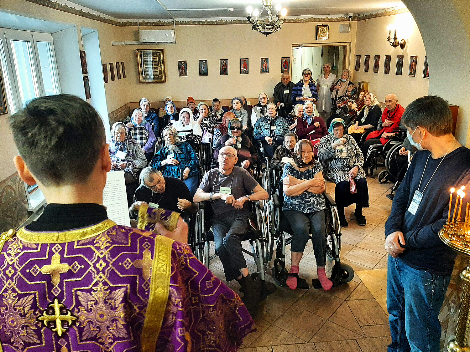 28 марта 2026 года в храме преподобного Серафима Саровского при Геронтологическом центре «Юго-Западный», приписанном к храму Иверской иконы Божией Матери в Беляеве, настоятель иерей Игорь Краев совершил Таинство Соборования.