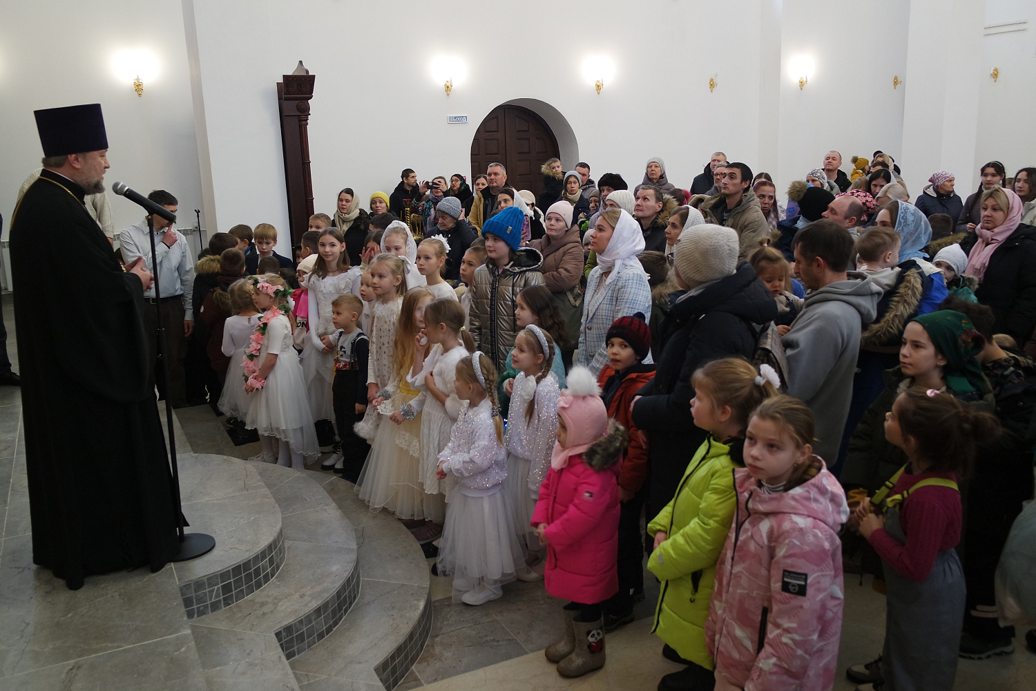 После спектакля настоятель храма священник Максим Глухих поблагодарил детей за выступление и вручил каждому ребёнку, присутствующему в храме, Рождественский подарок.