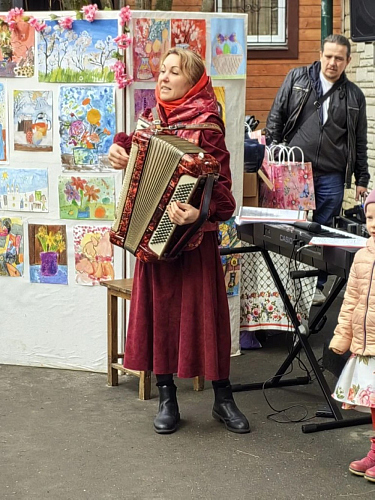 Началось выступление с пения тропаря Пасхи Господней и продолжили концерт учащиеся младшей группы «Зёрнышки»: детки прочитали стихи, спели песни под аккомпанементом аккордеона, в исполнении директора Воскресной школы Гришиной Екатерины Вадимовны.