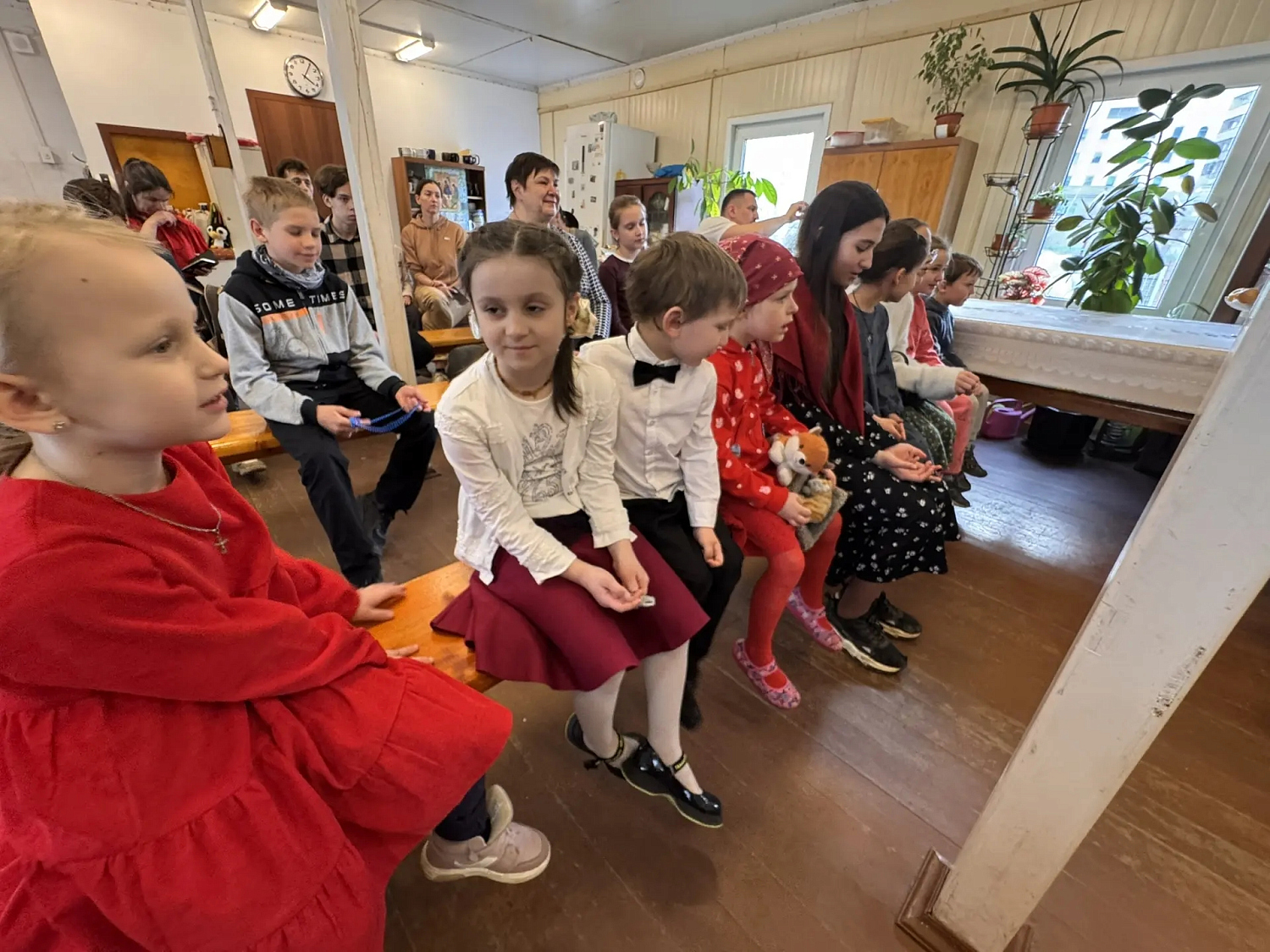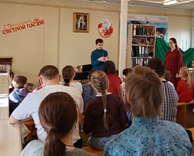 Перед фестивалем в трапезной храма состоялся детский пасхальный концерт. Дети спели пасхальные песнопения, прочли стихи и исполнили произведения под гитару и укулеле.