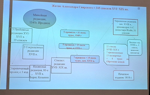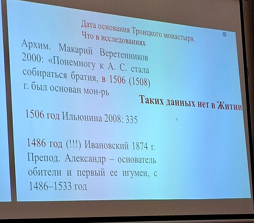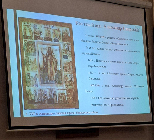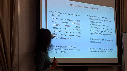 Александра Евгеньевна рассказала о том, как проходили исследования рукописей, рассказывающих о житии преподобного Александра Свирского и создании Троицкого монастыря.