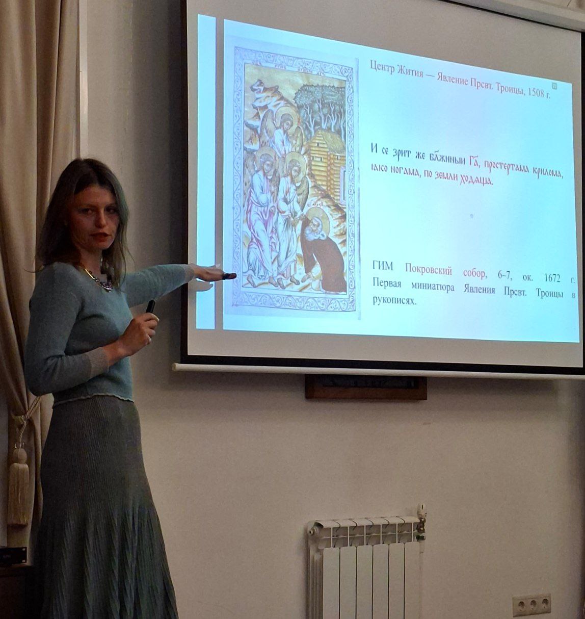 Далее поговорили о том какое было житие, когда оно было написано, как развивалась эта традиция, о виршах, которые появляются в рукописях.