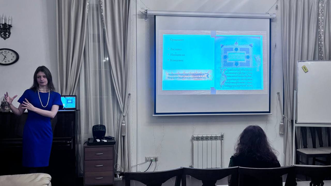 В начале Александра Евгеньевна рассказала об основных местах хранения древних рукописей, а также об электронных ресурсах, на которых можно познакомиться с информацией о древнерусской письменности.