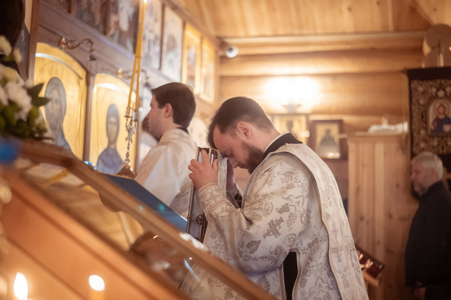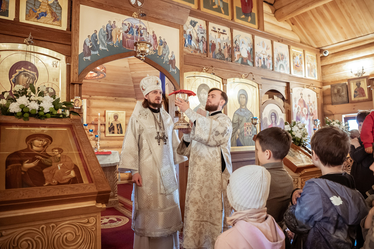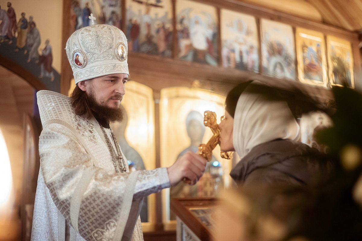 По окончании богослужения настоятель храма священник Владимир Ласкин сердечно поблагодарил Преосвященнейшего епископа Алексия за совершение Литургии, а также попросил его архипастырских молитв, чтобы Господь преобразил души верующих, воскресив нас, подобно Лазарю, к духовной жизни. В дар викарию была преподнесена точная копия креста святой равноапостольной Нины.