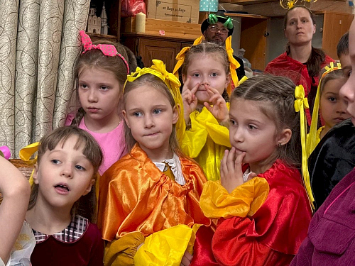 Участвовали в показах дети всех групп Воскресной школы. Роли были распределены так, что каждый ребёнок играл в спектакле персонажа сольно или в составе группы. Ребята выучили слова, родители помогли подобрать костюмы.