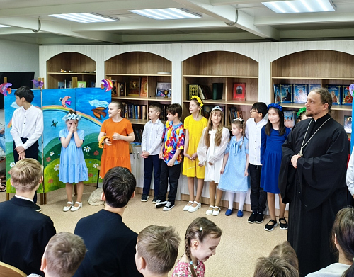 Перед началом праздника ко всем присутствующим со словами напутствия и поздравления обратился и.о.настоятеля храма Святителя Спиридона иерей Сергий Евтеев и директор воскресной школы Смирнова Ольга Валерьевна.