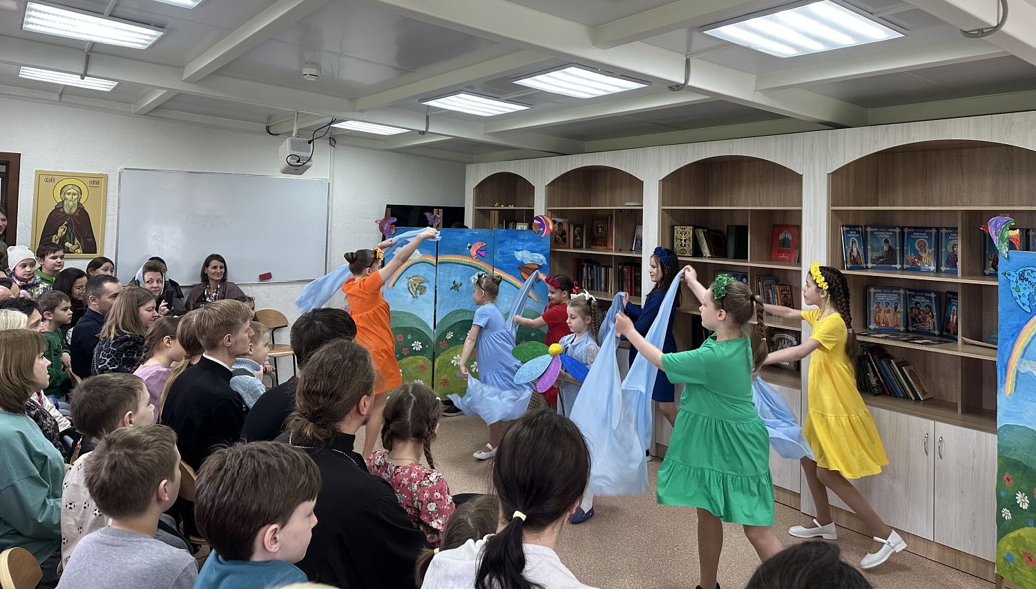26 апреля 2026 года, в Неделю 3-ю по Пасхе, святых жен Мироносиц, по окончанию воскресной литургии и крестного хода в воскресной школе храма Святителя Спиридона, епископа Тримифунтского, Чудотворца, в Южном Бутове, состоялся Пасхальный концерт театральной студии Воскресной школы.