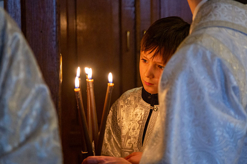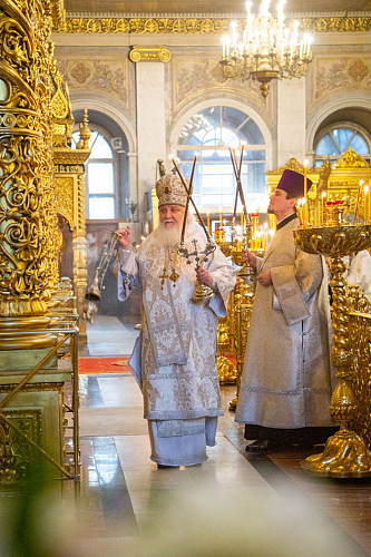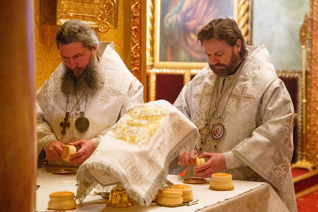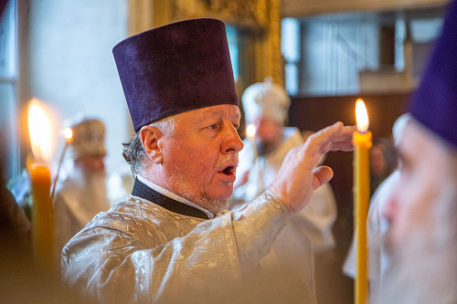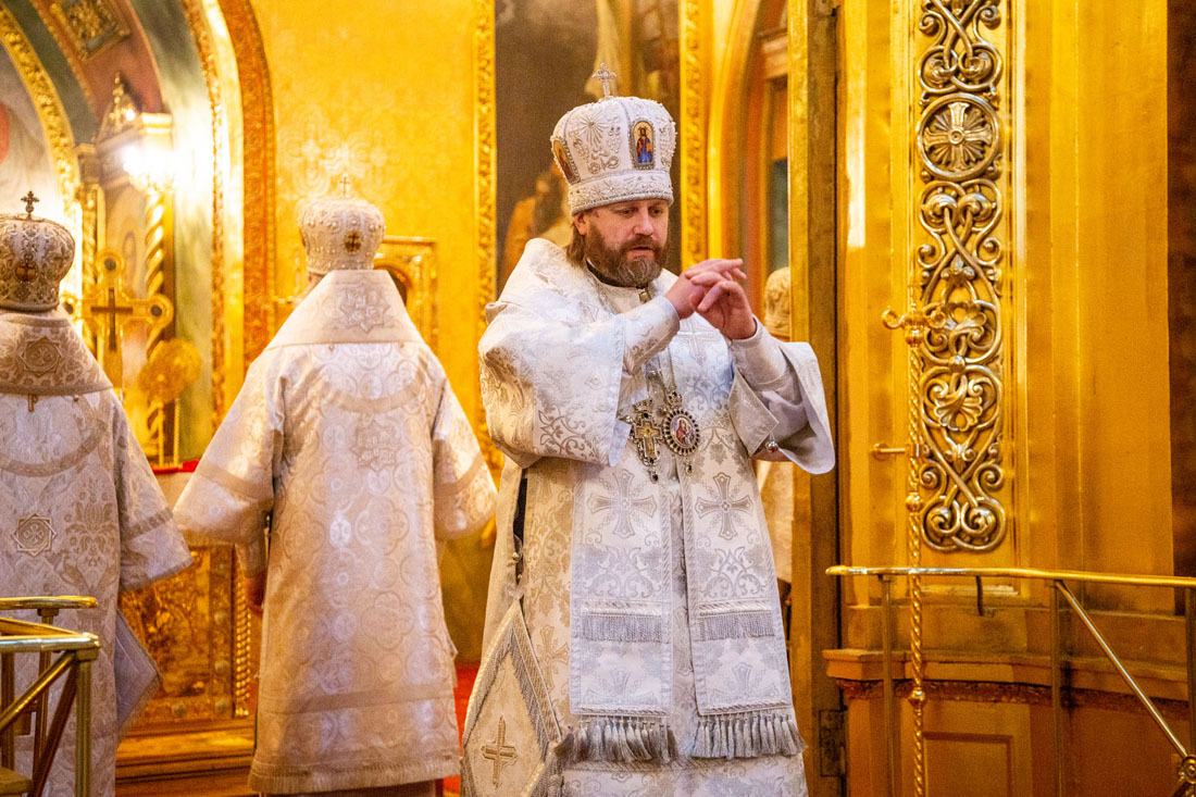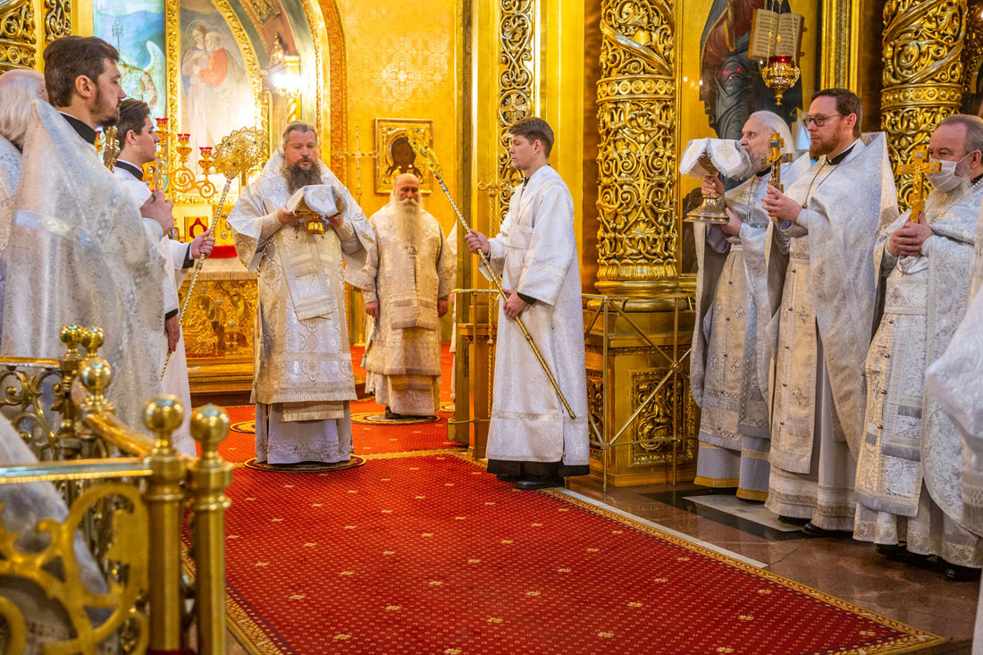 Богослужебные песнопения исполнил хор кафедрального собора под управлением Александра Майорова.