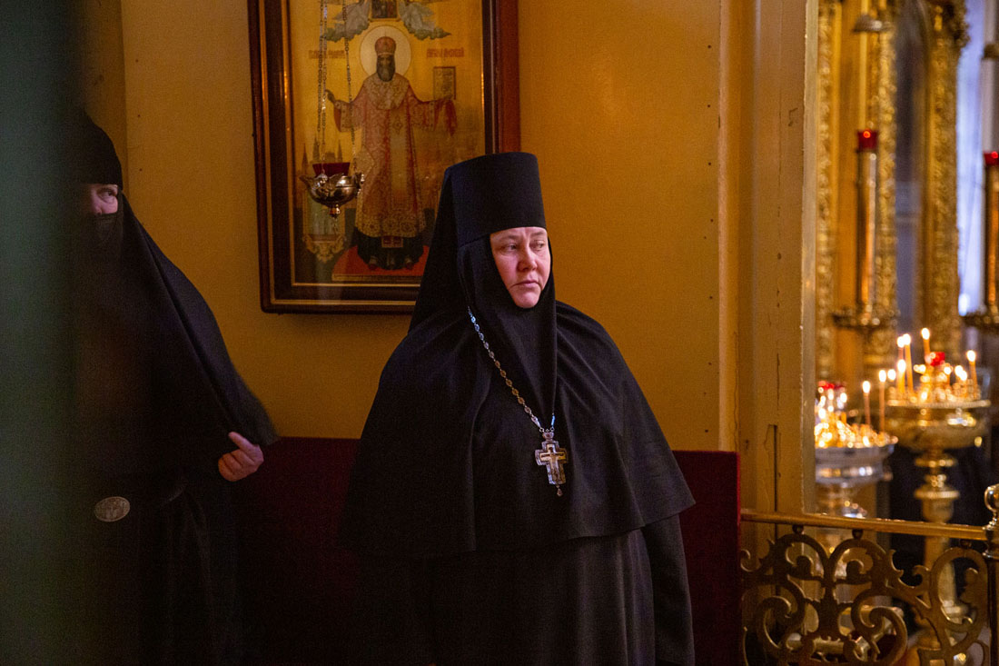 В храме молилась настоятельница Крестовоздвиженского Иерусалимского ставропигиального монастыря игумения Екатерина (Чайникова) с сестрами обители.