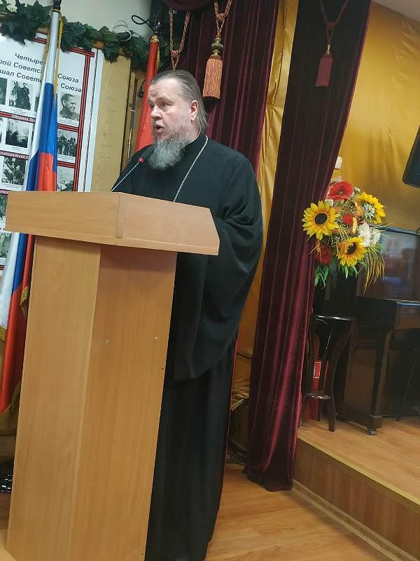 На мероприятии по приглашению руководства Совета ветеранов Черноморского флота побывал настоятель храма святого праведного воина Феодора Ушакова игумен Дамиан Залетов).