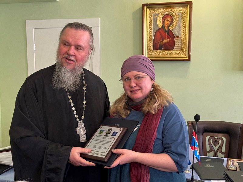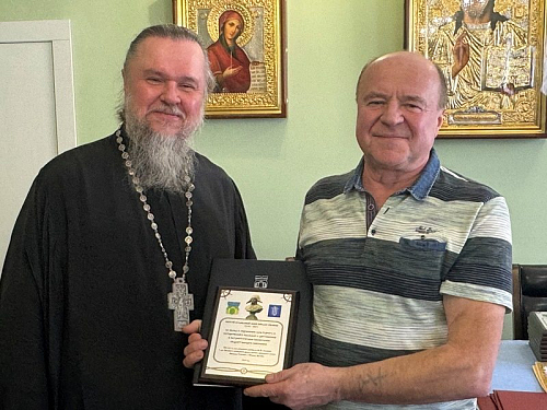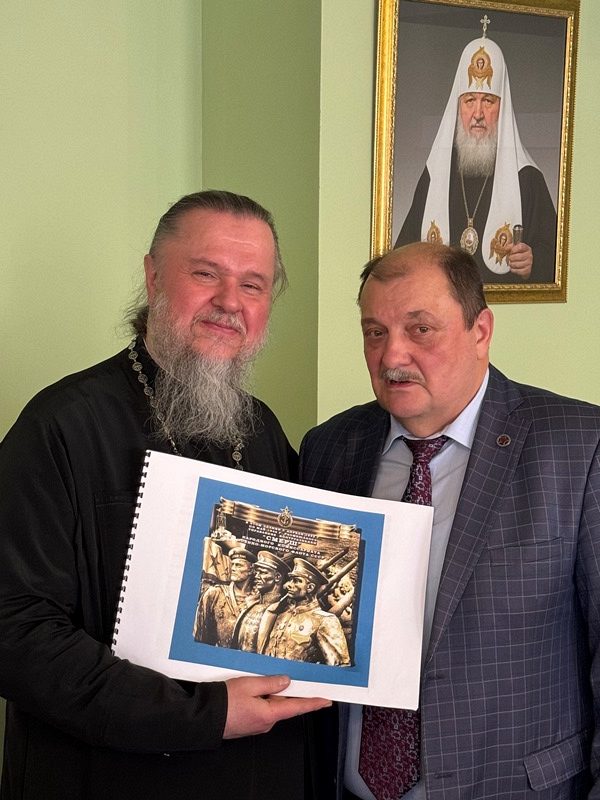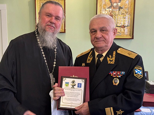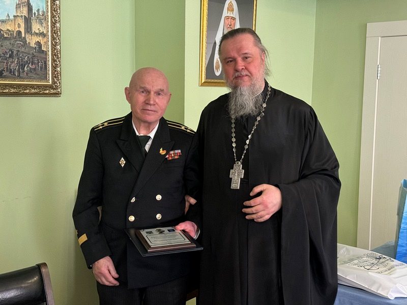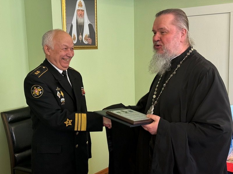 Капитан 1-го ранга Шалахин Валерий Александрович, куратор ветеранской работы по военно-морскому направлению Совета ветеранов военной контрразведки ФСБ России, поздравил с праздником и подарил в Морской музей Патриаршего подворья проект памятной доски в честь военно-морских сотрудников "Смерш", которую планируют скоро установить на штабе "Смерша" ВМФ в Москве.