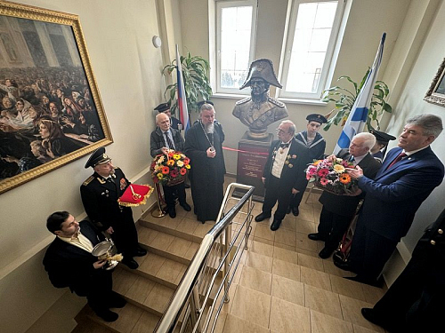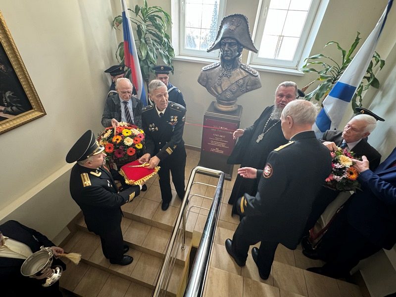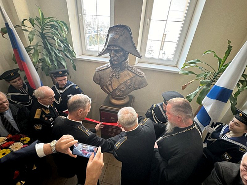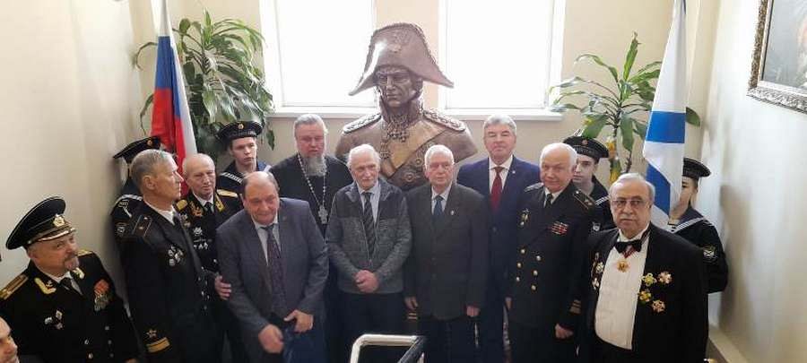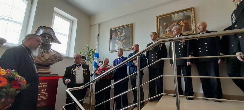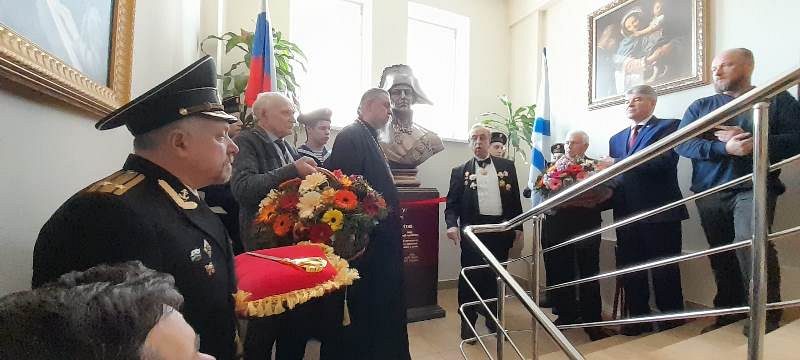 У бюста Святому адмиралу выстроились со знаменем Российчкой Федерации и Андреевским флагом кадеты школы № 1161, также кадеты держали символическую красную атласную ленту. Три адмирала торжественно развезали ленту и открыли памятник небобедимому адмиралу Флота Российского. Генералы Владимир Петрович Кудрявцев и Ефим Гордеевич Чикулаев возложили к бюсту корзины цветов. Игумен Дамиан окропил бюст Святой водой.