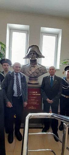 начальник Объединённого Совета ветеранов ВМФ Московского Комитета ветеранов войны капитан 1 ранга Валерий Иванович Васильев поздравил всех с Днем Защитника Отечетва и юбилеем адмирала Ф.Ф. Ушакова,