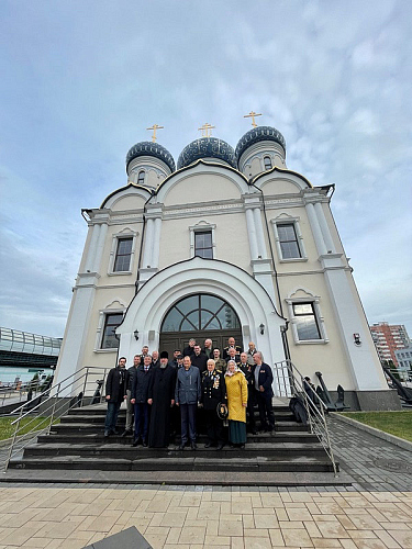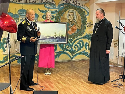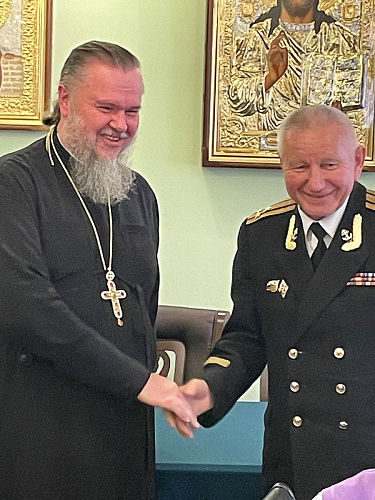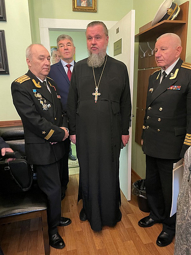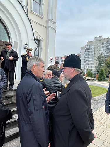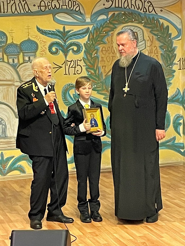 Настоятель приветствовал всех собравшихся и тепло поблагодарил всех за участие в престольном празднике храма Святого адмирала. Отдельно он отметил присутствующего "в строю" генерала Кудрявцев Владимир Петрович.