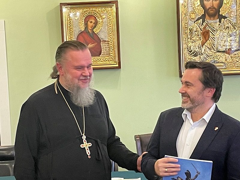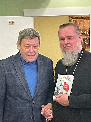 Писатель и журналист, полковник Бондаренко Александр Юльевич подарил настоятелю первую книгу из серии «Хроники разведки: мир между двумя войнами».