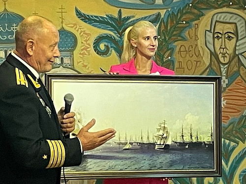 Представитель Совета ветеранов Черноморского флота капитан 1-го ранга Комаров Александр Дмитриевич, замечательный исполнитель и автор, порадовал всех возвышенной песней о Родине.