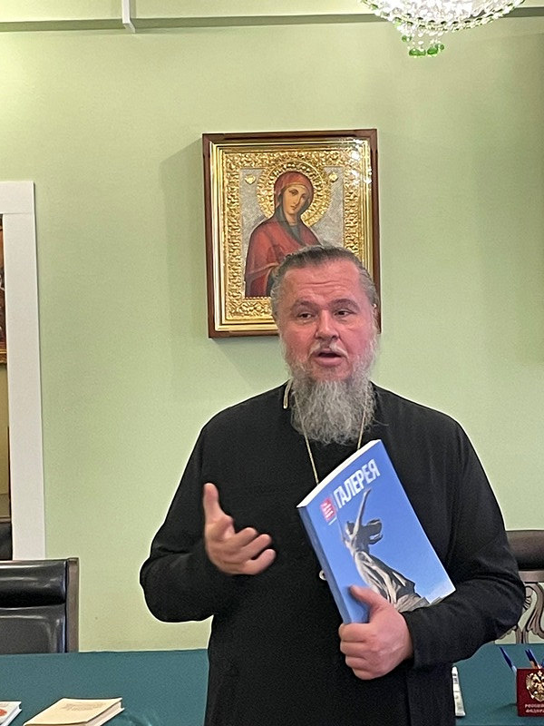 Представитель Совета ветеранов ВКР, полковник Александр Александрович Новопашин, передал настоятелю приветствие и поздравление Председателя Совета «Общественной организации ветеранов Департамента и органов военной контрразведки», генерал-майора Белоусова Александра Игоревича и вручил игумену Дамиану книгу о святых воинах России.