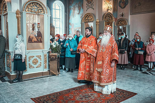 6 мая 2021 года, в четверг Cветлой седмицы, в день памяти великомученика Георгия Победоносца и мучеников Анатолия и Протолеона, епископ Мытищинский Феофилакт, наместник Адреевского ставропигиального монастыря г. Москвы, управляющий Юго-Западным викариатством, совершил Божественную Литургию в храме святой великомученицы Параскевы Пятницы в Качалове.