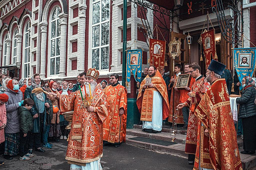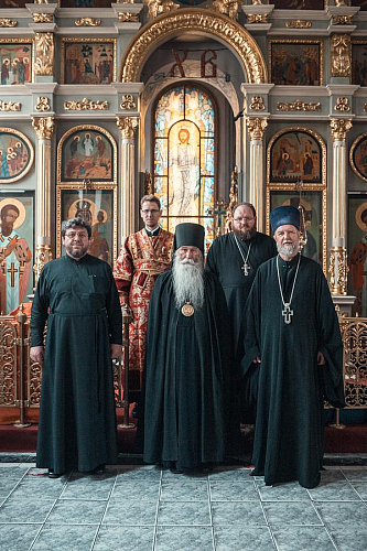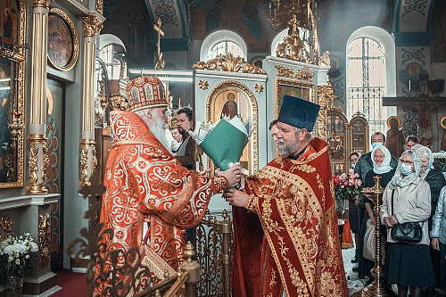 Его Преосвященству сослужили: протоиерей Анатолий Кожа, настоятель храма святой великомученицы Параскевы Пятницы в Качалове, благочинный Параскево-Пятницкого церковного округа; иерей Алексей Денисов, клирик храма святой великомученицы Параскевы Пятницы в Качалове; протодиакон Николай Платонов, клирик Богоявленского кафедрального собора г. Москвы; диакон Григорий Богданов, клирик храма святой великомученицы Параскевы Пятницы в Качалове.