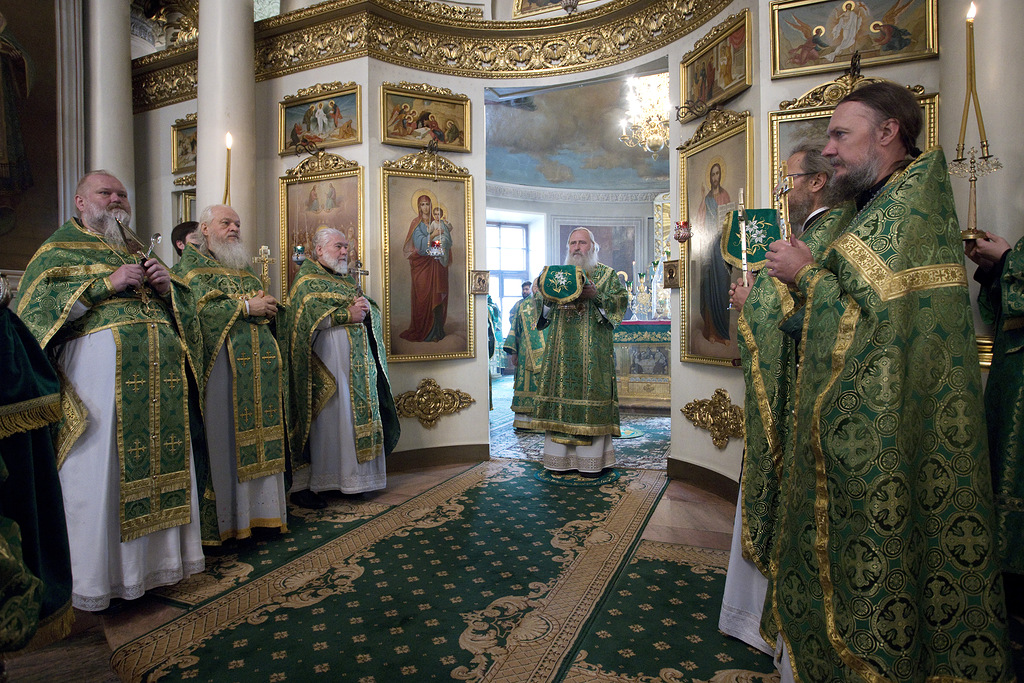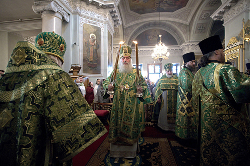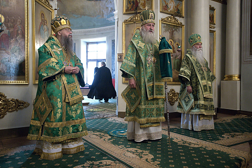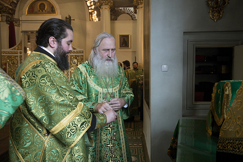 Его Высокопреосвященству сослужили: епископ Солнечногорский Алексий, наместник Данилова монастыря; епископ Мытищинский Феофилакт, наместник Андреевского ставропигиального мужского монастыря г. Москвы; архимандрит Лука (Пинаев), благочинный Данилова монастыря; протопресвитер Владимир Диваков, секретарь Патриарха Московского и всея Руси по г. Москве; игумен Феофан (Лукьянов), заведующий Сектором протокола ОВЦС МП; протоиерей Игорь Якимчук, секретарь ОВЦС по межправославным отношениям; насельники Данилова монастыря в священном сане.