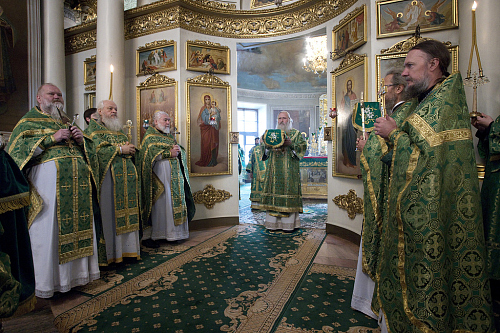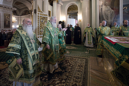 По окончании Литургии было совершено славление и молитва перед ковчегами с частицами мощей благоверных князей Даниила Московского и Александра Невского.