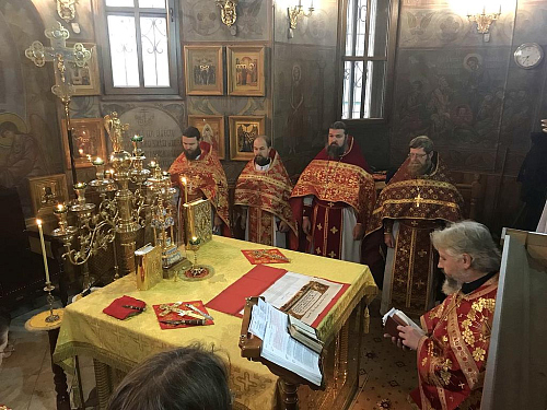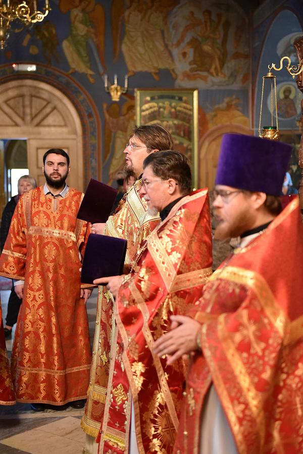 13 октября, в день памяти священномученика Александра Орлова, по благословению управляющего Юго-Западным викариатством епископа Дмитровского Феофилакта в храме Живоначальной Троицы в Старых Черемушках совершено соборное Богослужение духовенства.