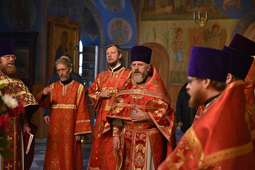 По окончании Литургии протоиерей Николай Карасев и духовенство благочиния совершили славление священномученику Александру Орлову.