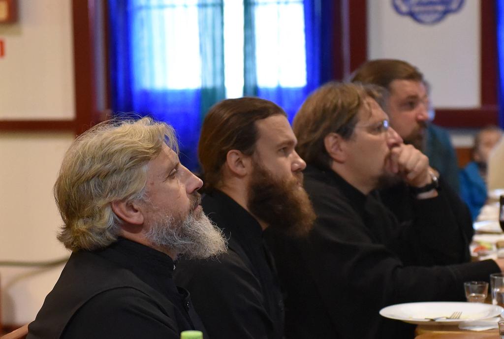 По окончании Богослужения духовенство и прихожане разделили братскую трапезу. Иерей Алексей Петухов выступил с презентацией фильма о жизни и подвиге Священномученика Александра Орлова и открыл выставку, посвященную Новомученикам и Исповедникам Юго-Западного викариатства. Выставка в храме Живоначальной Троицы в Старых Черемушках продлится до конца октября.
