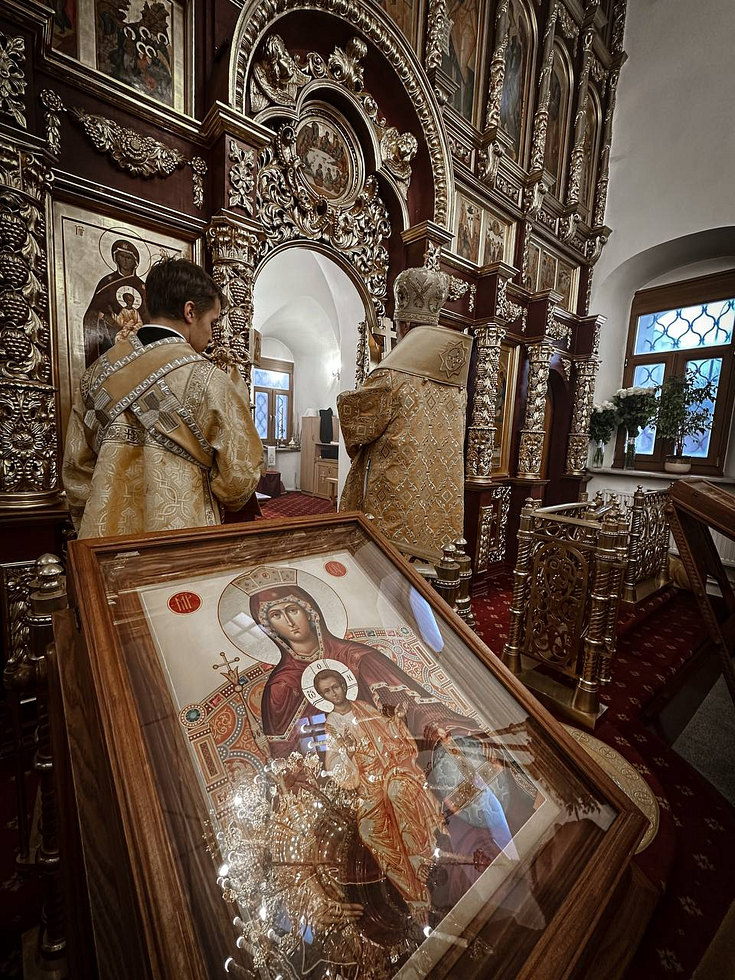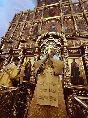 По окончании Божественной Литургии было совершено славление празднику и возглашены уставные многолетия.