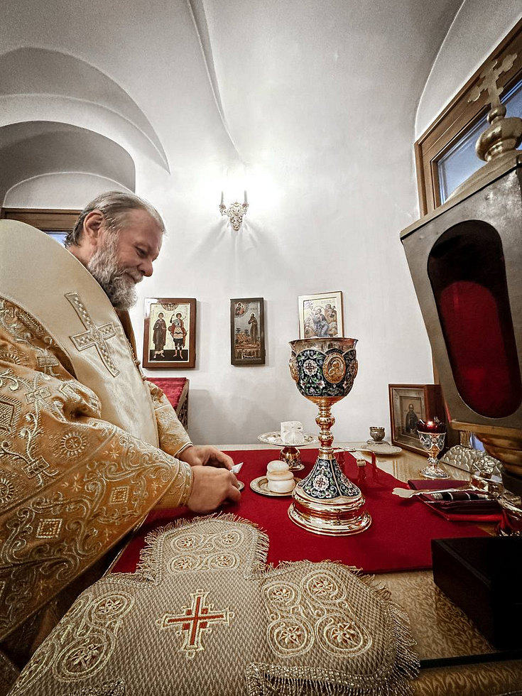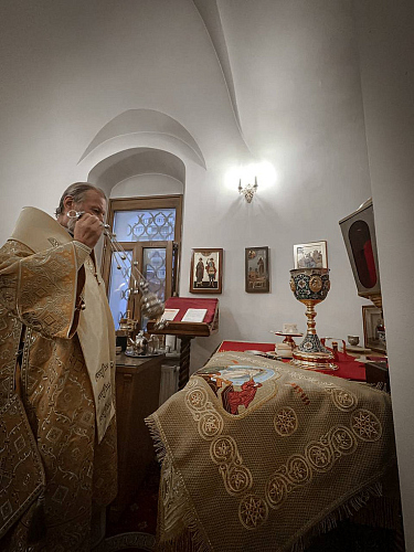Его Высокопреосвященству сослужили: помощник настоятеля иеромонах Ефрем (Русу). протоиерей Виктор Постика, иерей Николай Кошняну, протодиакон Александр Волков и диакон Василий Голбан.