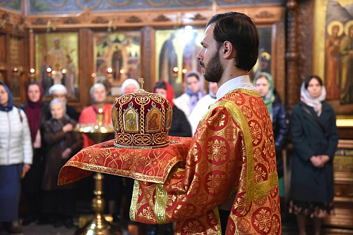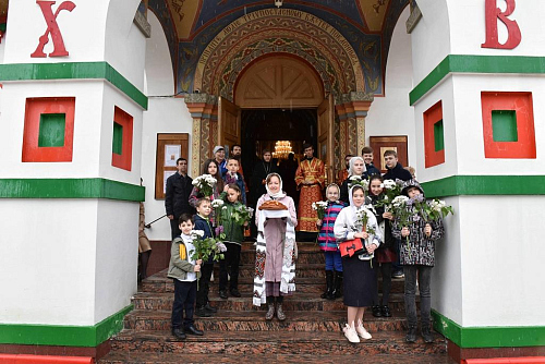 По окончании Богослужения епископ Пантелеимон поздравил с Днем Тезоименитства протоиерея Николая Карасева и преподнес ему в дар образ Пресвятой Богородицы. В ответном слове благочинный поблагодарил управляющего викариатства за возможность соборно помолиться в этот праздничный день и подарил Владыке Пасхальное яйцо с изображением Феодоровской иконы Божией Матери.