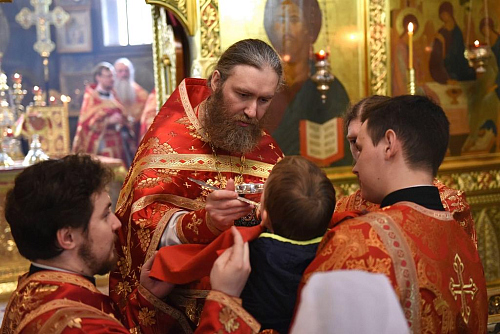 Проповедь перед причастием произнес клирик храма Живоначальной Троицы в Старых Черемушках иерей Константин Сутчев.