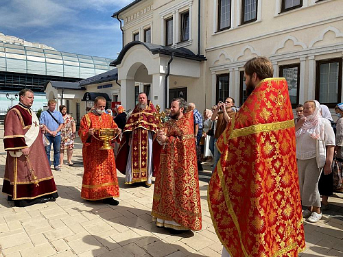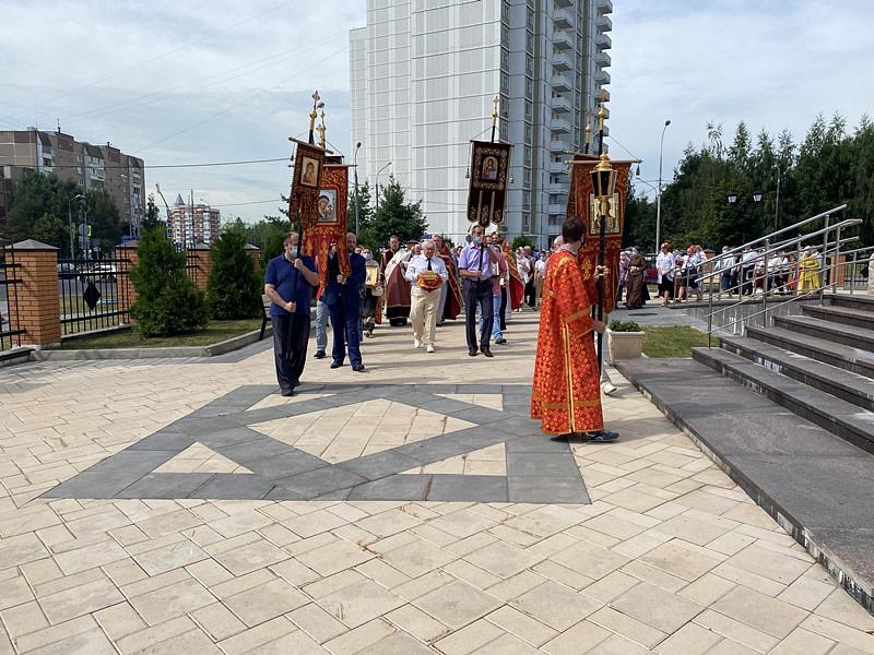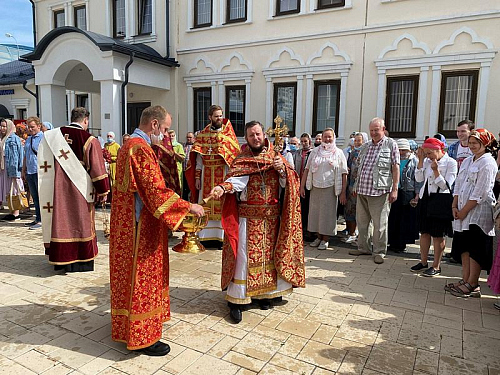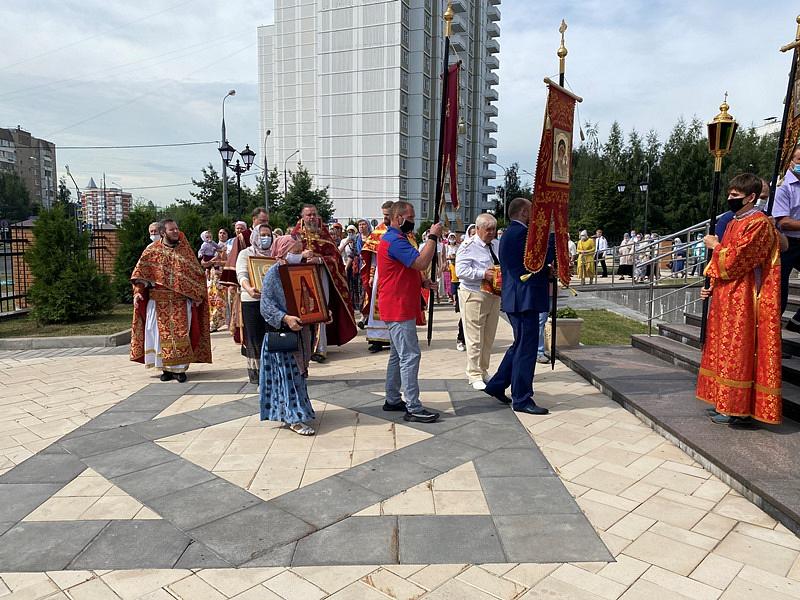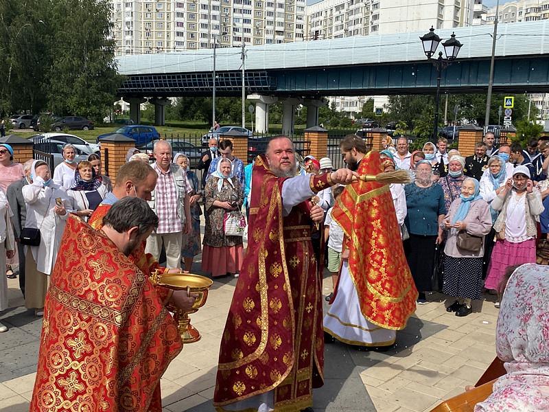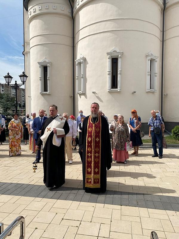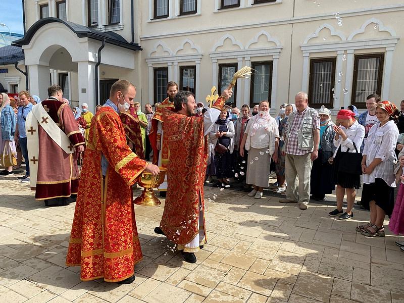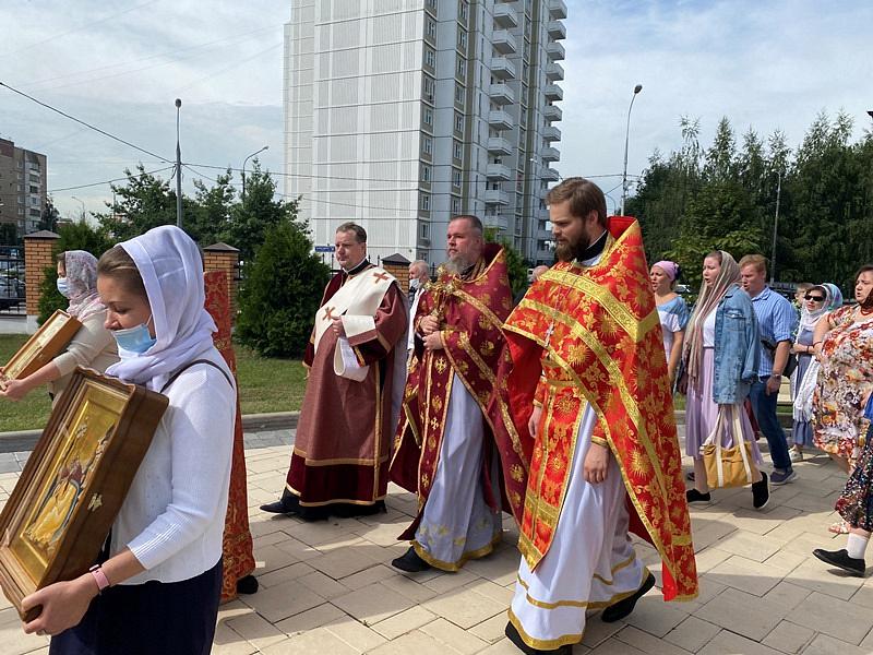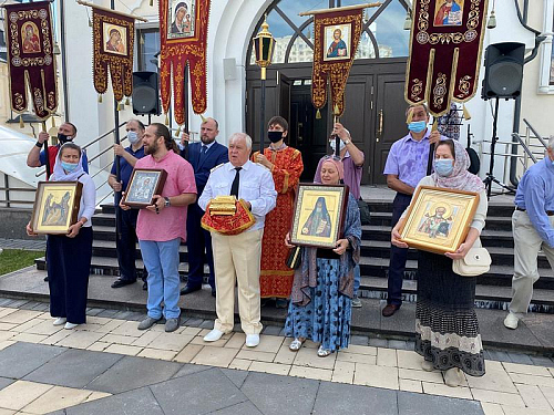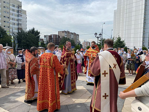 Была отслужена Божественная Литургия, водосвятный молебен и совершен Крестный ход вокруг храма.