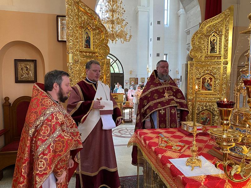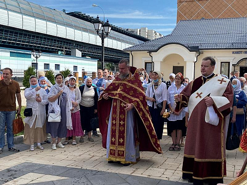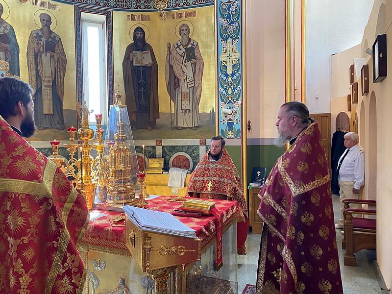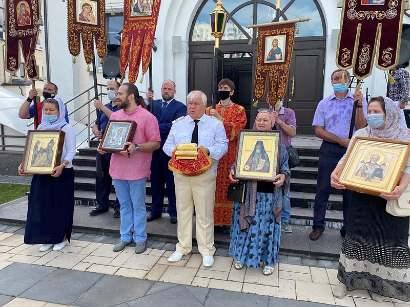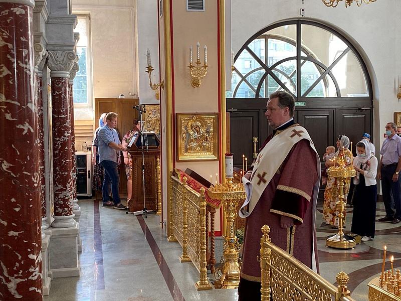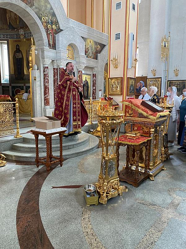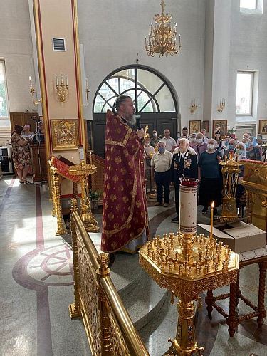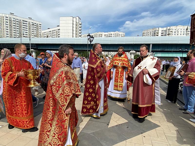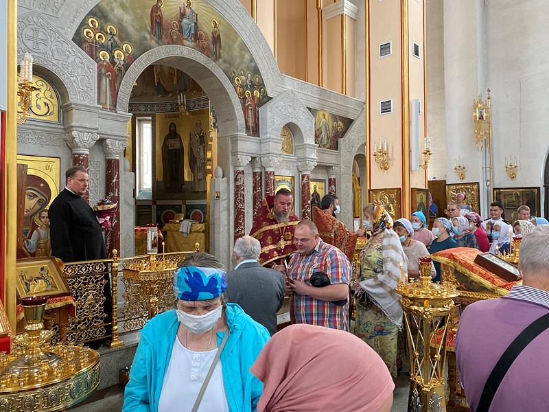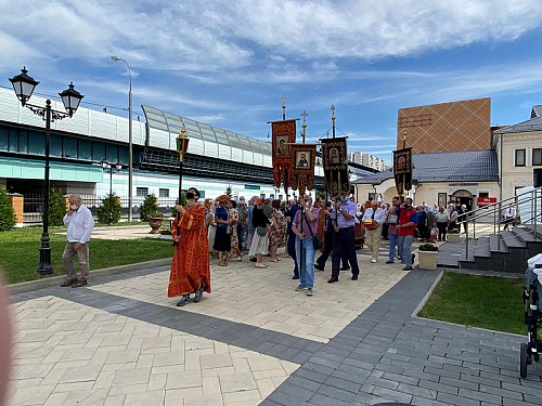 Была отслужена Божественная Литургия, водосвятный молебен и совершен Крестный ход вокруг храма.
