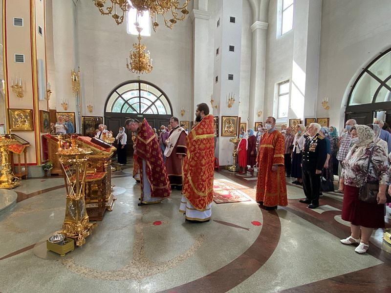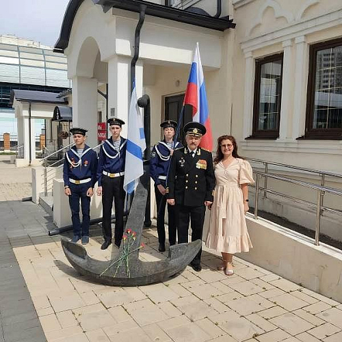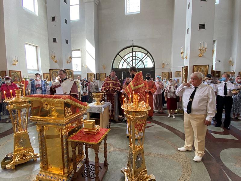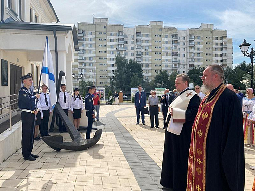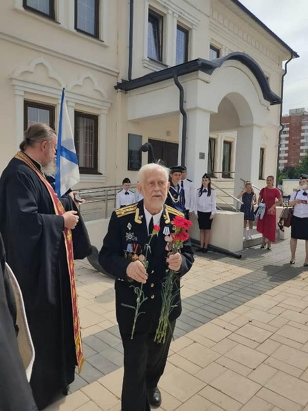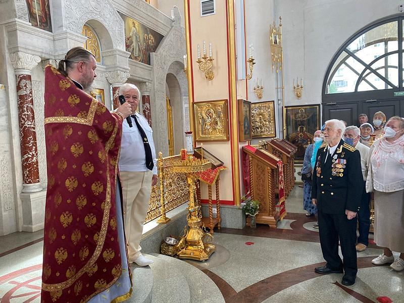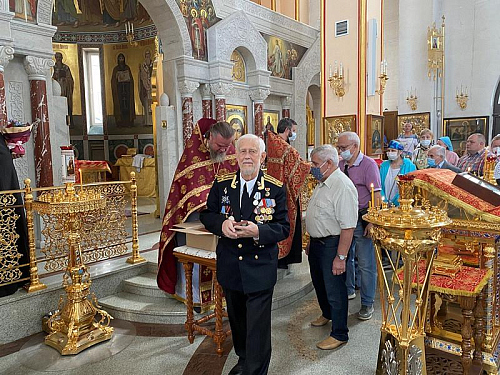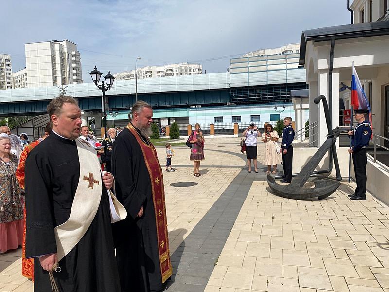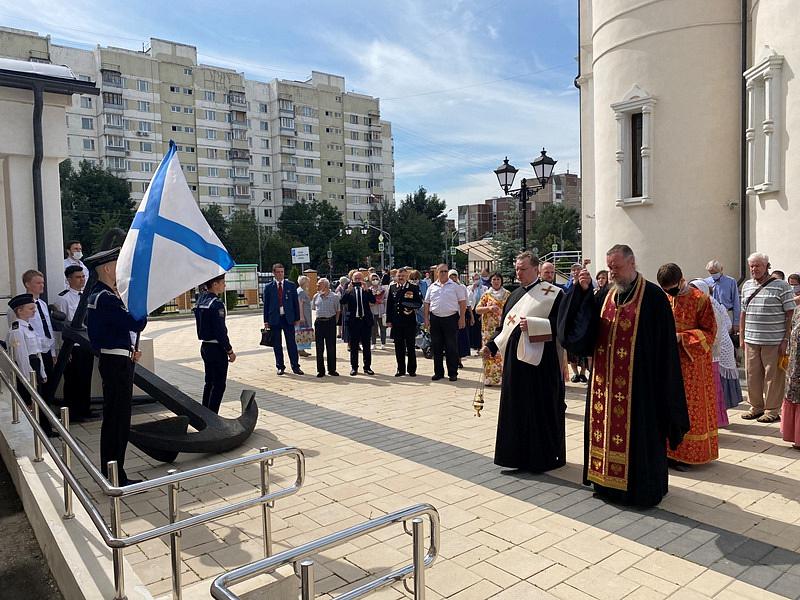 По завершению Литургии настоятель храма, игумен Дамиан (Залетов), совершил заупокойную молитву по морякам и воинам у старинных якорей русских кораблей, которые пребывают за алтарем храма. После молитвы под колокольный звон прихожане возложили цветы у морского мемориала. У якорей в почетном карауле выстроились ребята, кадеты и курсанты, с флагом России и Андреевским флатом.