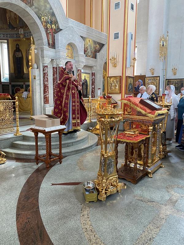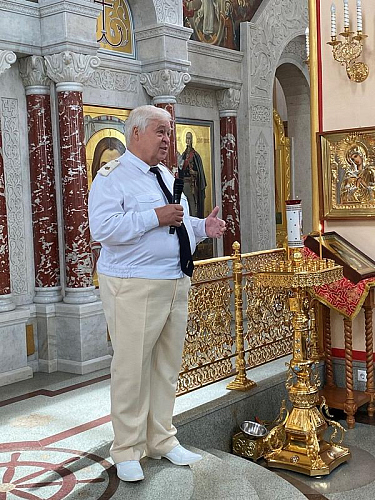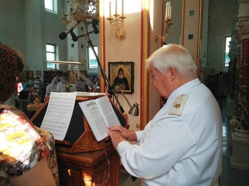 Песнопения богослужения исполнил смешанный хор под управлением Форостяной Светланы. Молитвы ко Причастию прочитал контр-адмирал Козлов Д.Ю.