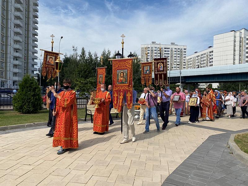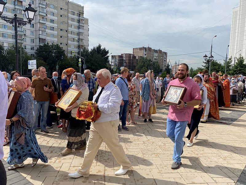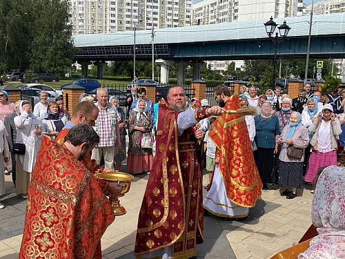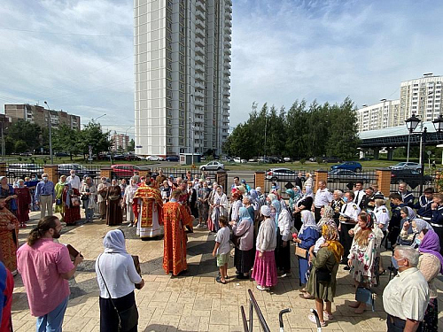 В конце богослужения было возглашено многолетие Святейшему Патриарху Московскому и всея Руси Кириллу, по благословению которого было начато и продолжается святого дело устроения этого храма Божия и всей огромной Программы строительства новых храмов в Столице. Всем потрудившимся в устроении приходской жизни на этом новом месте, жертвователям и благоукрасителям храма Божия многая лета!
