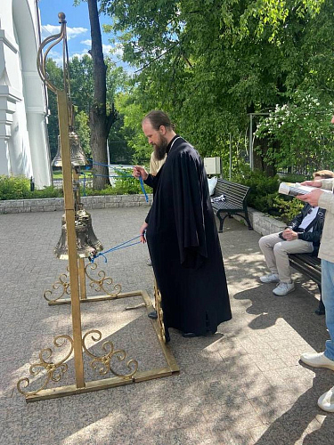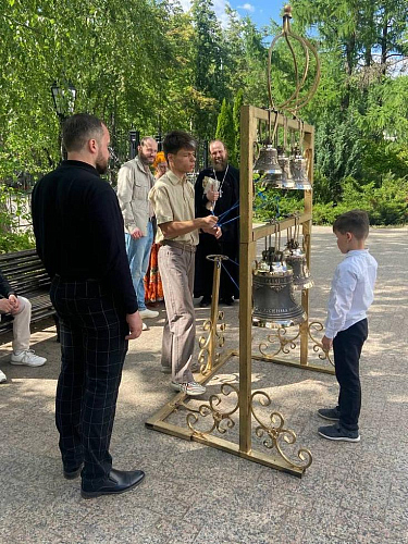 В этот день на территории храма была установлена передвижная звонница. Руководитель школы звонарей при Иерусалимском храме города Воскресенска Московской области Сергей Медведев рассказал о традициях колокольного звона и провёл мастер-класс, в котором поучаствовали и дети, и взрослые.