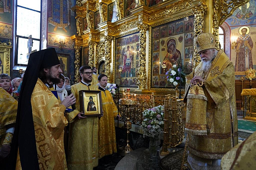 После окончания богослужения настоятель храма архимандрит Алексий (Туриков) поблагодарил владыку за сугубую радость совместной молитвы. В дар Его Преосвященству были преподнесены икона преподобной Евфросинии Московской и панагия.