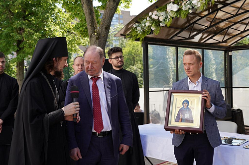 На празднике также присутствовал ректор МФЮА Алексей Григорьевич Забелин. Его сердечно поздравили от лица духовенства и прихожан с днем рождения и подарили икону преподобной Евфросинии Московской.