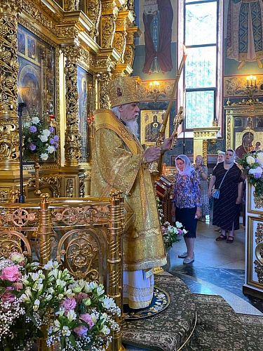 После евангельского чтения Преосвященнейший владыка Пантелеимон обратился к молящимся с проповедью. В своем пастырском слове он особо затронул тему святости и исполнения заповедей блаженств.