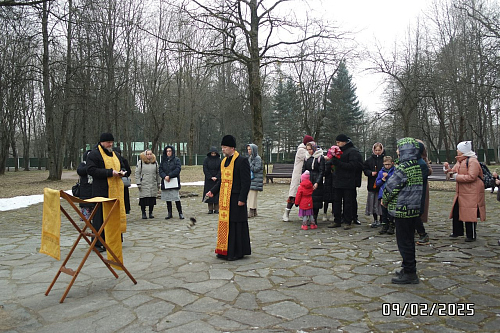9 февраля 2025 г., в праздник Собора Новомучеников и Исповедников Церкви Русской, поминовение всех усопших, пострадавших в годину гонений за веру Христову, после праздничной Божественной Литургии настоятель храма Священномученика Серафима, митрополита Петроградского в Южном Бутове г.Москвы иерей Максим Глухих и клирик храма иерей Сергий Онг, отслужили панихиду на Бутовском Полигоне по всем невинно-убиенным в годы лихолетья.