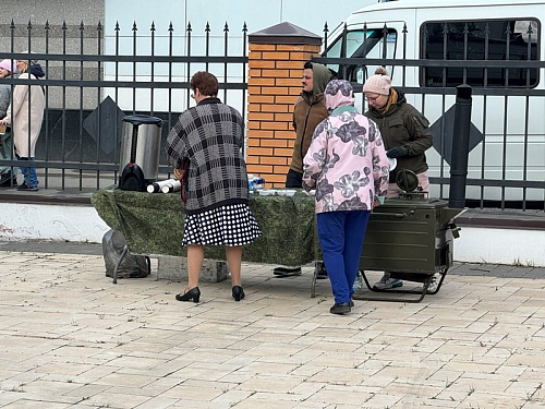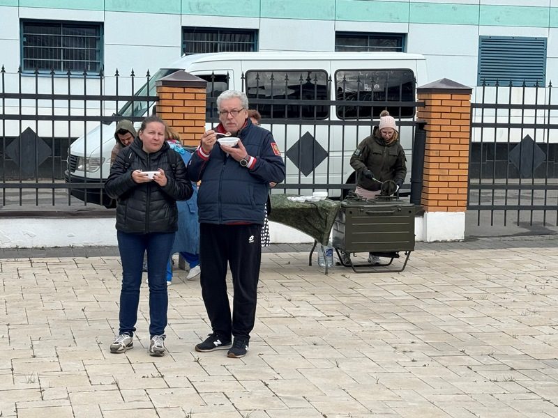После концерта все участники, прихожане и гости поели "морской" каши в походной кухне.