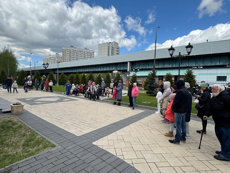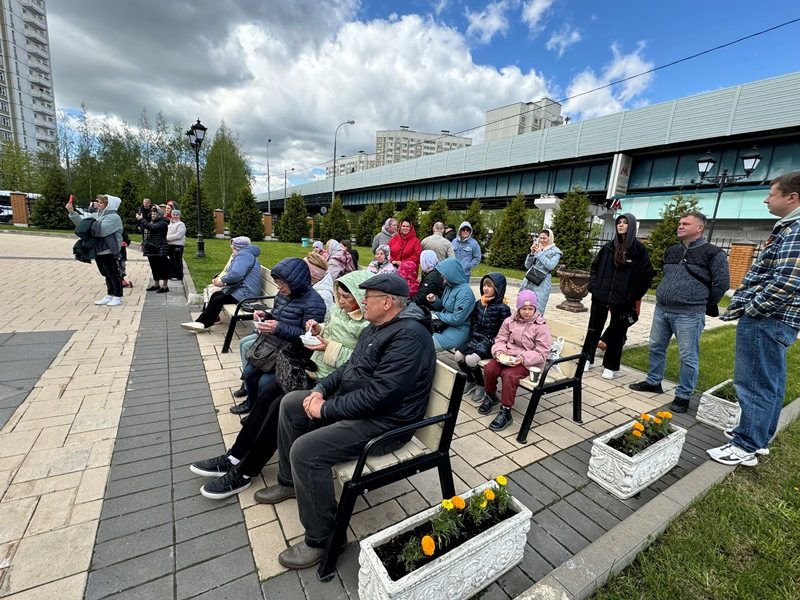 После праздничного богослужения прихожане и все желающие были приглашены на Пасхальный праздник, который состоялся на улице около храма святого праведного воина Феодора Ушакова в Южном Бутове.