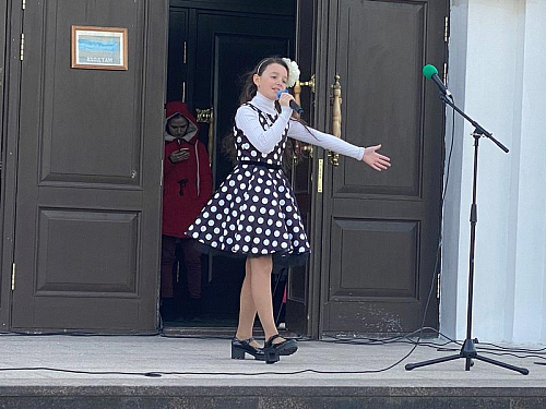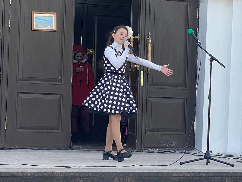 - Анна Рябинина, воспитанница вокального ансамбля "Взлётная полоса" "А знаешь, всё ещё будет!" "В роще пел Соловушка".